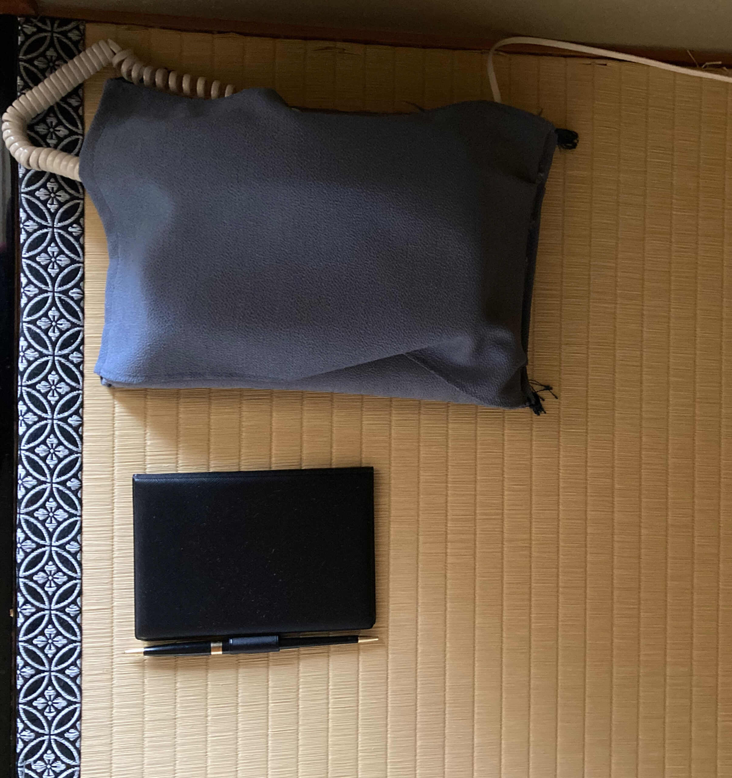 Le téléphone est caché sous un tissus, comme s’il était un intrus dans ce décor des temps anciens.